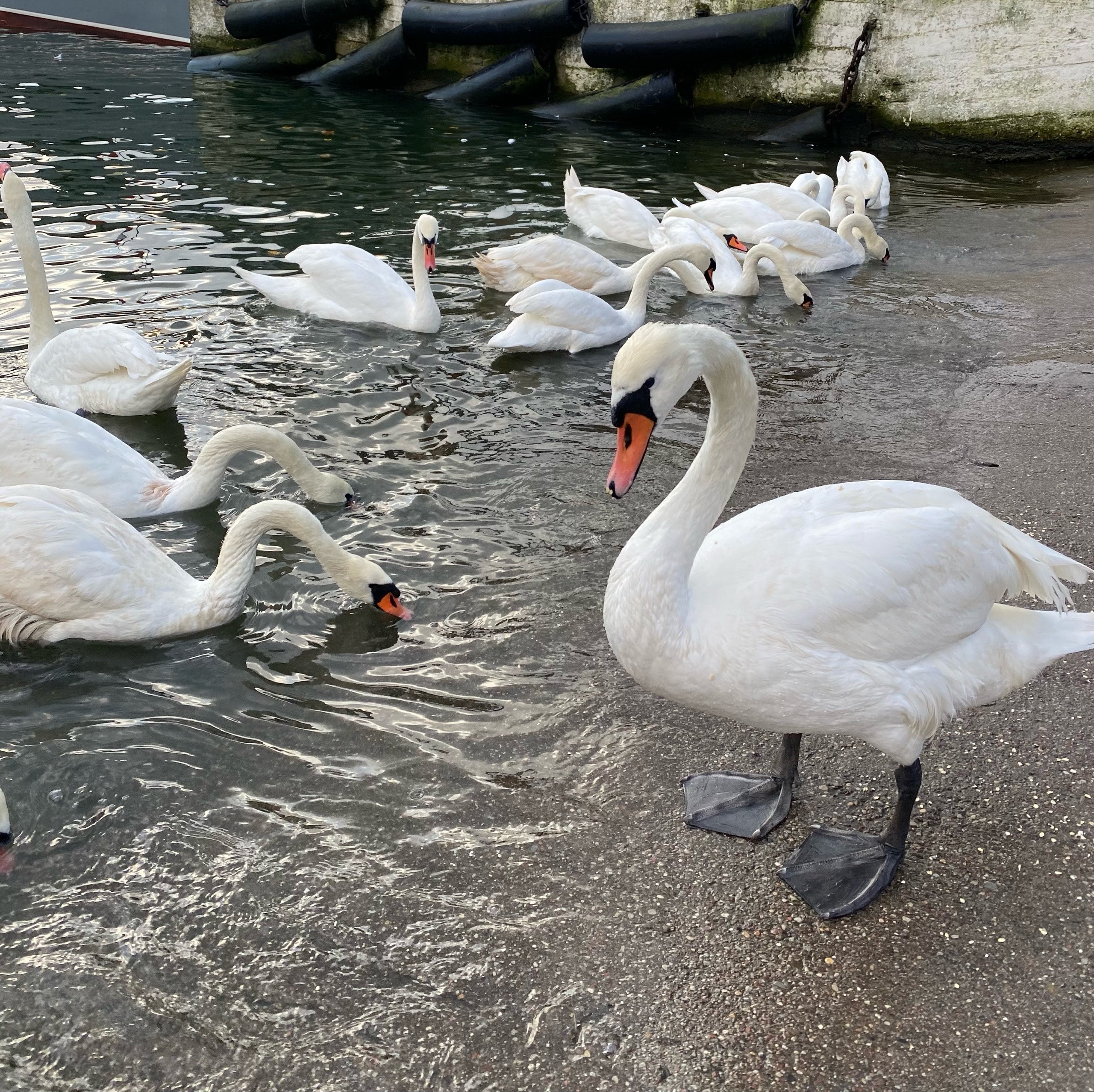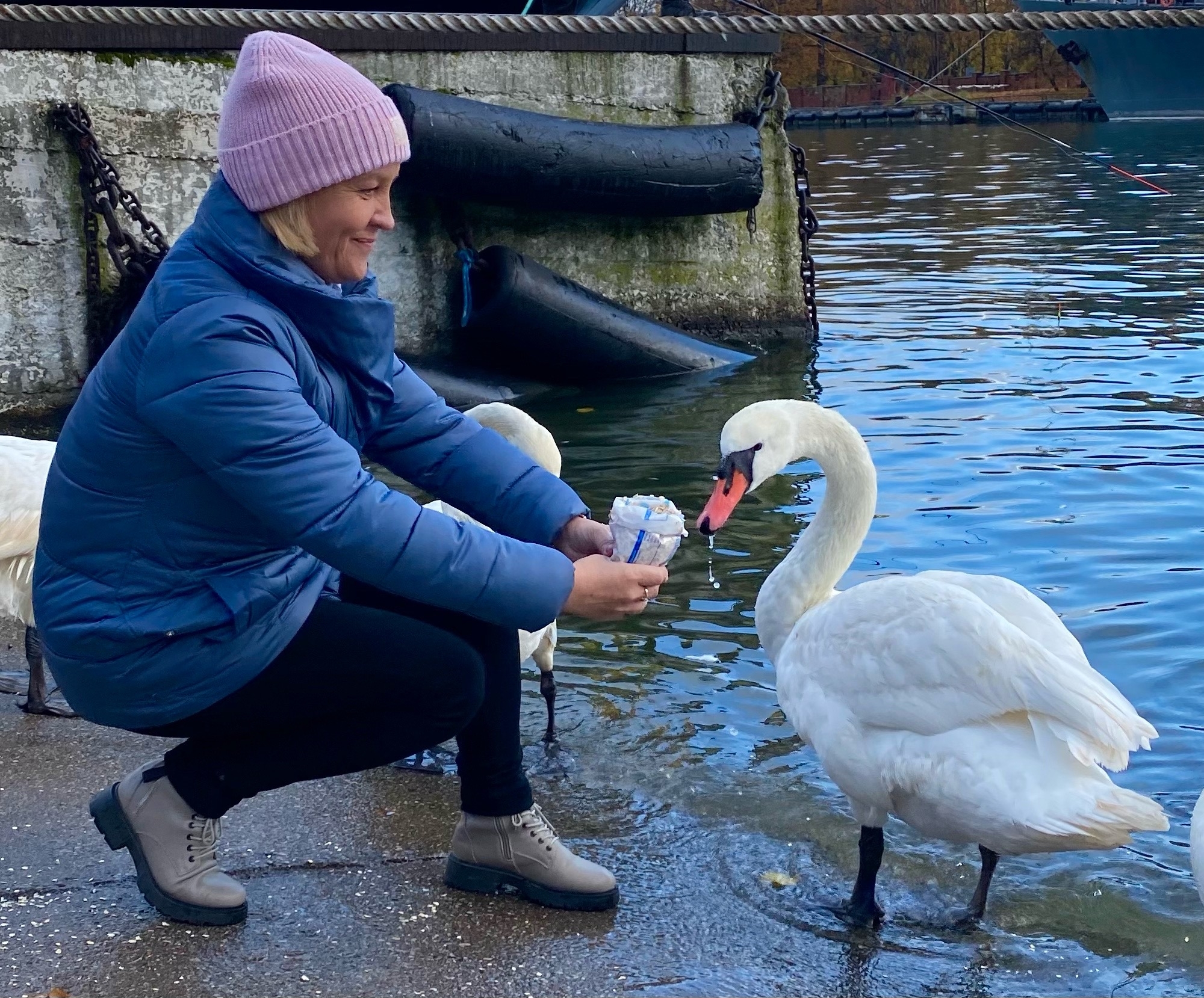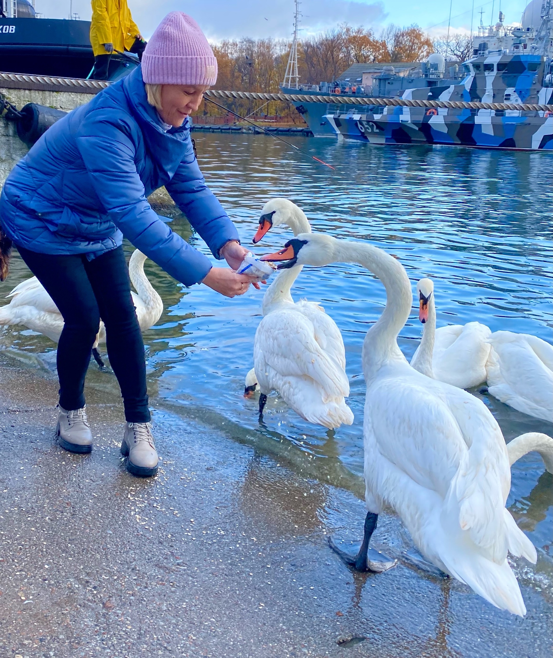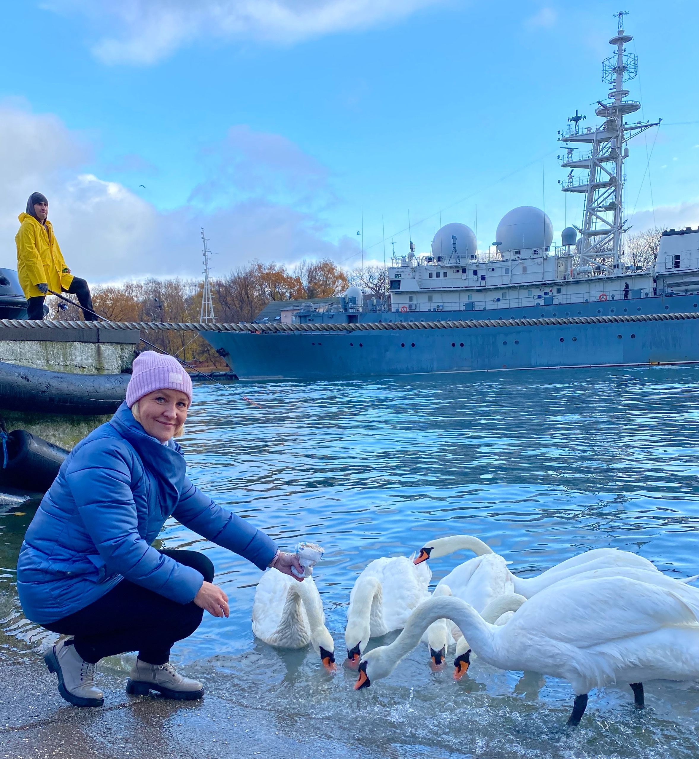 Сегодня снова была на экскурсии с Валерой, Мариной и Евгенией по городам КО. Первый из них был Балтийск (Пилау). Это конечно же самый западный город России, крупный морской порт, паромный терминал, заброшенный военный аэродром. В Балтийске расположена Балтийская военно-морская база Балтийского флота — крупнейшая база военно-морского флота России на Балтийском море. А мне он запомнился тем, что я впервые видела лебедей так близко и кормила их с руки. Радовалась как ребёнок. Столько лебедей я еще нигде не видела. Удалось даже посмотреть на подрастающее поколение (они серые). А людей они совсем не боятся. Общение с этими прекрасными птицами никого не оставит равнодушным! Огромное спасибо Валере, Марине и экскурсоводу Евгении.😍